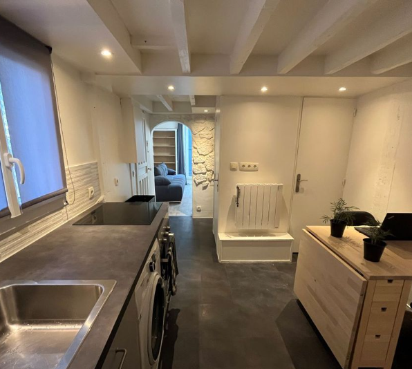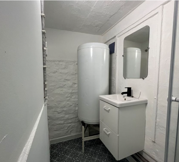 L’appartement se compose d’une entrée avec cuisine ouverte équipée, un séjour, un WC séparé et une chambre avec salle d’eau au premier niveau. À l’étage, deux chambres supplémentaires et une autre salle d’eau complètent cet ensemble. L’intérieur est en bon état général, avec fenêtres PVC double vitrage pour une meilleure isolation.